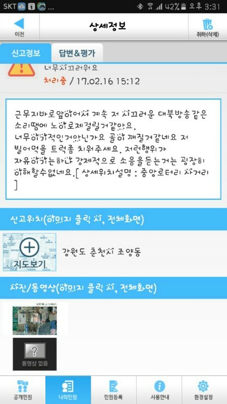 그런데 오늘 가게앞에서 저 트럭이 나타나서 머리가 울릴정도로 떠들어 제껴서 민원을 넣었는데 신고내용이