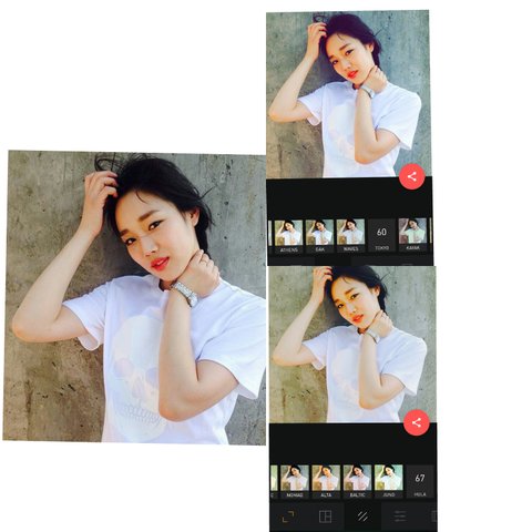 심한것같아서! 그리구 가로화면 정중앙에 내얼굴 두면 오히려 얼굴이 작아보이는것 같기두하구!!그다음 보정중에 사진 맘에드는크기로자르고 내 얼굴 위치도 옮기는구얌