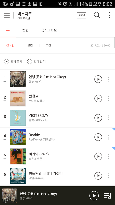 ❤현재 안녕못해 비가와 순위❤