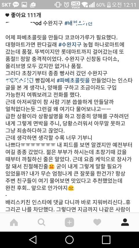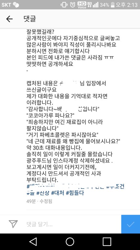 오전에 톡까지갔다가 급삭제된 케익가게에 코코아가루 요구하다 저격글까지 오른 먹스타계정