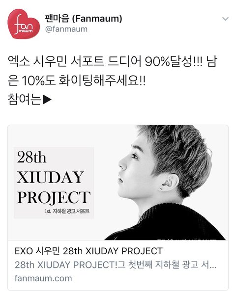 벌써 90%달성이라니 우리팬들 정말 대단해>.<