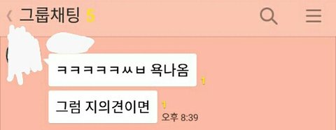 하지만 몇몇 여자 애들의 뒤에서는 여전히 얘기가 오가고 있었어요. 성예와 우빈, 미현이가 있는 또다른 톡방에 초대되어 있었던 실장은 그들이 하는 얘기를 지켜보다 이건 좀 아니다 싶어 스크린샷을 찍어 저에게 보내주었어요.