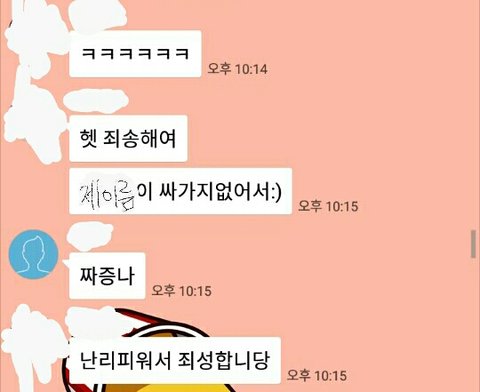 여자들끼리 투표를 하기 위해 만들어졌던 톡방에 성예가 제 의견에 따지고 들기 시작한 것입니다. 그래도 맞는 의견이었기에 무시할 수 없었어요. 하지만 분명히 개인적으로 연락을 해달라는 말을 했음에도 불구하고 여자 애들이 다 있는 곳에서 공개적으로 얘기를 하는 것이 마음에 들지 않았어요. 공개적으로 트인 곳에서 얼굴 붉히며 토론하는 것은 원하지 않았거든요. 결국은 이 상황을 지켜보고 있던 다른 남자 애들(목격자)에게 의견을 물어 반톡 음담패설 사건은 실장 선에서 정리가 되었습니다.