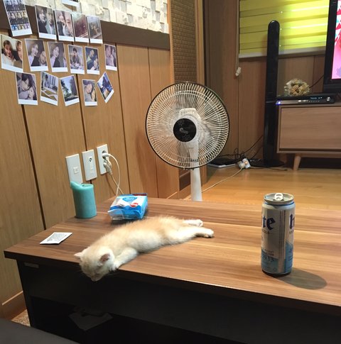 더운날 엄마 맥주옆에서 바람쐬던너