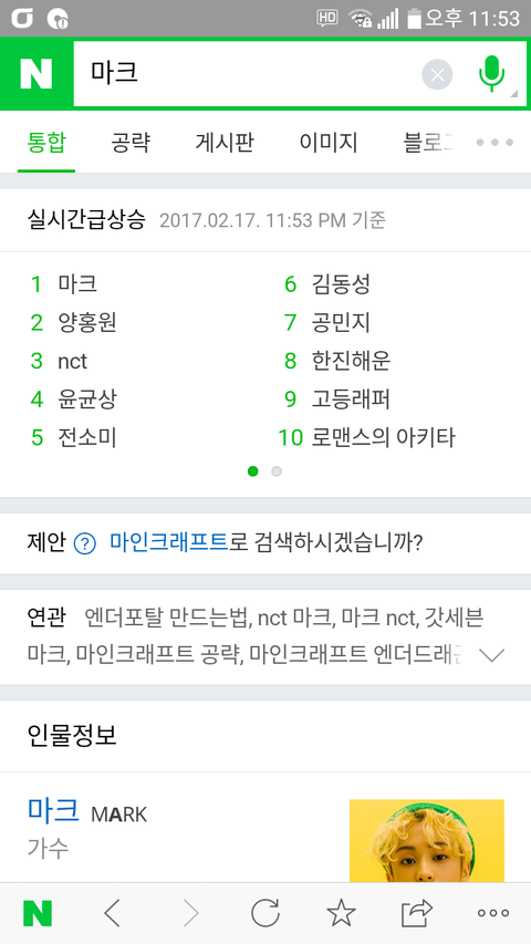 마크 먼저나옴ㅠㅠㅠㅠㅠ 마잉꾸래푸투로 검색하시겠습니까? 뜨고..ㅠㅠㅜ 맨날 NCT 마크 로 검색했는데 너무 ㄱ기뻐서 글쓴다...조나끼쁨ㅜㅜㅜ 덩달아 실검에 울애들ㅠㅠ