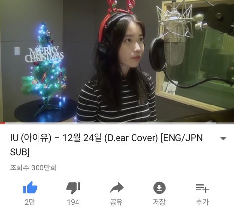 제작년에 이 영상을 보게되고,,작년에도 듣고 올해도 또 듣고 다시 들을 예정인디 죵말..^^..짱임 솔직히 다 봤을꺼라 예상하지만 혹시 안본 유애나들은 꼭!유튜브에 아이유 12월 24일 을 보길 바라요..