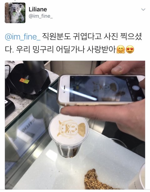 앜ㅋㅋ 밍구리 라떼아트ㅋㅋㅋㅋ