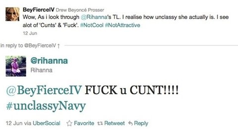 누가 리한나는 욕을 너무많이쓴다 하니까 그거에 풀발해서 fuc.k cunt라 말함ㅉㅉ(cunt는 여자성기를 굉장히 저질적으로 쓴욕)