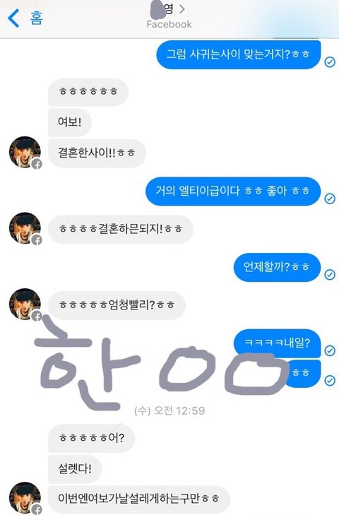 이것은 새로운 여자인 한00과 사겼었다는 캡처본임