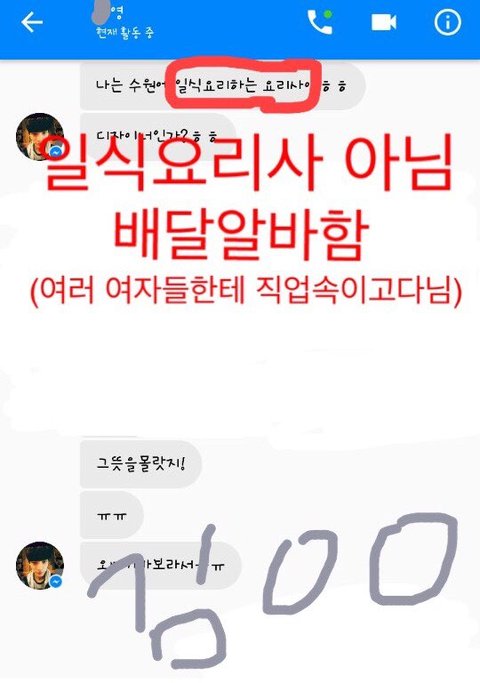 이렇게 여자들한테 속인것과 한달반전에만 해도 배달을 했다는 증거가 있음