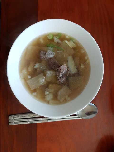 소고기뭇국입니다. 참기름과 국간장에 소고기를 볶아주고 무넣고 끓이면 끝!