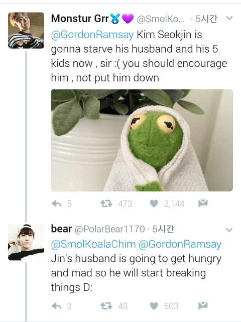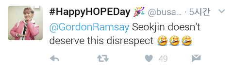 고든 램지분이 트위터에 석진이 짜왕 만든거에 대해 평가했어ㅋㅋㅋ