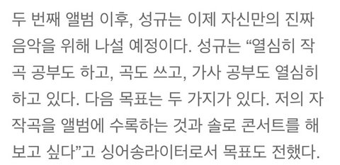 성규는 사실 목소리도 독보적이긴 하지만 저 글 보니깐 진짜 더 궁금해진다ㅠㅠ 규는 과연 작곡 작사 어떻게할지ㅠㅠㅠ 성규표 음악 진짜 너무 궁금하다ㅠㅠㅠ 솔로2집낸지 2년됨 벌써.. 3년마다 내주는거면 내년에 군대가기전에 디싱으로라도..ㅠㅠㅜ헛된 꿈이겠지? 궁금ㅁㅇ해 디질꺼같다ㅠㅠㅠ