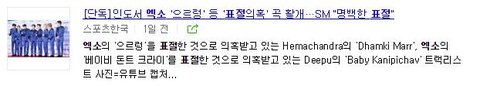 인도가수의 엑소 표절-빼박이었고 기사가 떴지? 소속사에서도 명백한 표절이라함ㅇㅇ