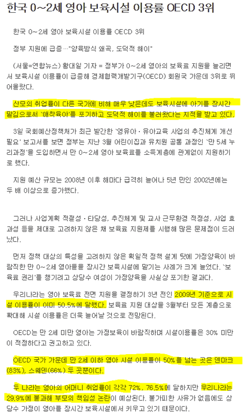 출산률 세계최저수준╋보육시설 이용률 세계최고수준인 국가에서 독박육아타령ㅋㅋ육아는 어린이집 유치원 선생님들이 하겠지ㅋㅋ좀 양심이 있어봐라.