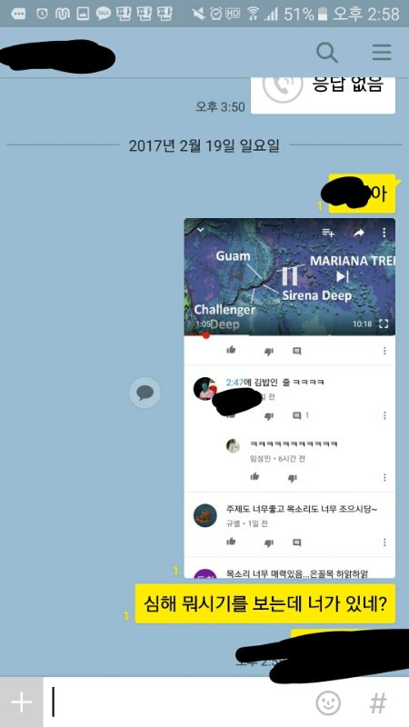 미친ㅋㅋ 동생이 저번부터 유튜브에 댓글 다는걸 보고 너 그런거 댓글달지마라고 싸움난다고 뭐라했는데 자긴 댓글 안 단다더니 진짜 우연히 심해생물인가 뭔가 그 동영상 댓글 구경하다가 보니까 내 동생임.. 동명이인이 절대아님 왜냐하면 쟤 카톡프사가 저거인적이 있어서ㅋㅋㅋㅋ지금 집에 없어서 일단 톡보냈는데 너무 신기함