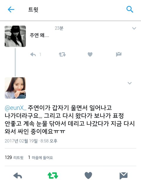 은서가 울면서 나갔다 들어왔다는 얘기