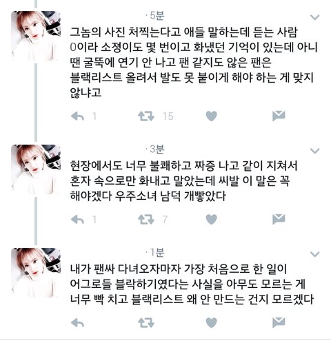 아무튼 이번 일까지 수많은 사건을 통해 소속사 측에서 대안을 고려해봤으면 좋겠음.