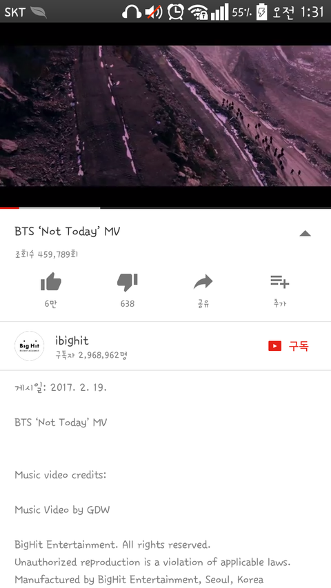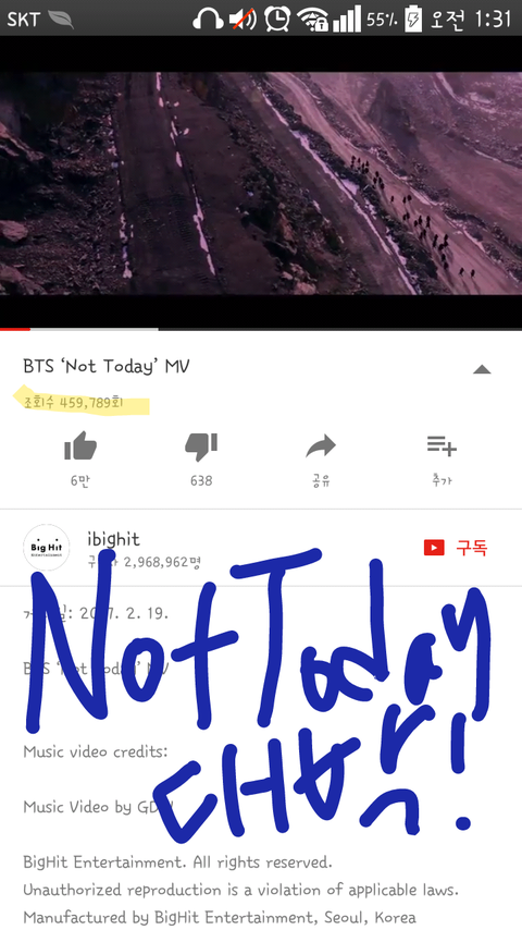 뮤비 올라온 지 1시간째 뮵밍 돌리는 중인데 이렇게 하는거 맞나? 틀린 거 있으면 지적해줘 뮤비는 로그아웃 상태로 보는 중이고 로그인 해서 좋아요 눌렀어