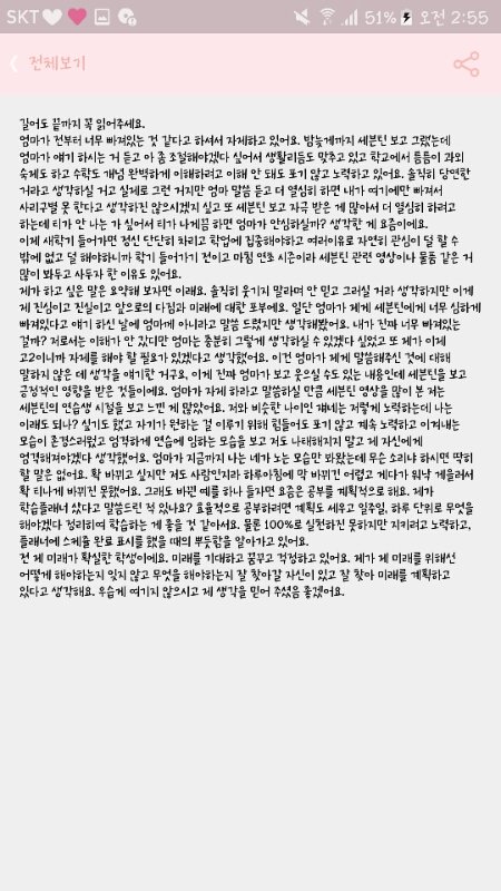 엄마가 나 너무 울애들한테 빠져 사는 것 같고 나랑 애들 너무 못 미더워하시고 최근에 사이도 진짜 안 좋아져서 카톡 보내는데 그 중 한 부분이거든? 보고 어떤지 얘기해주라..ㅡㅜ