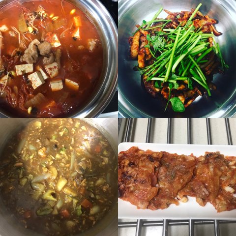 돼지고기김치찌개, 오징어볶음, 카레, 김치전