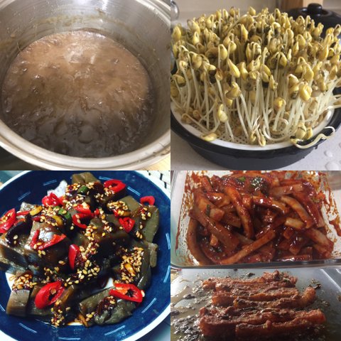 도토리묵 만들기, 콩나물 키우기, 돼지껍데기 양념해서 구워먹기