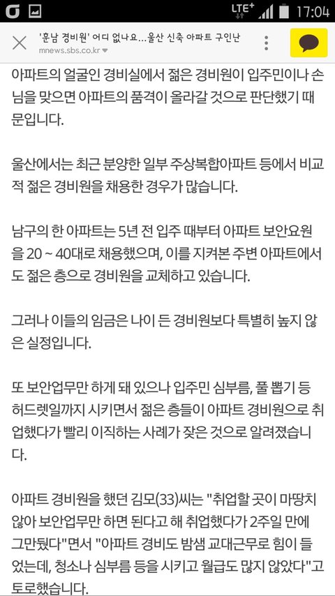 "잘생긴 경비원 없나요?" 훈남경비원만 뽑는다는 울산 아파트.jpg
