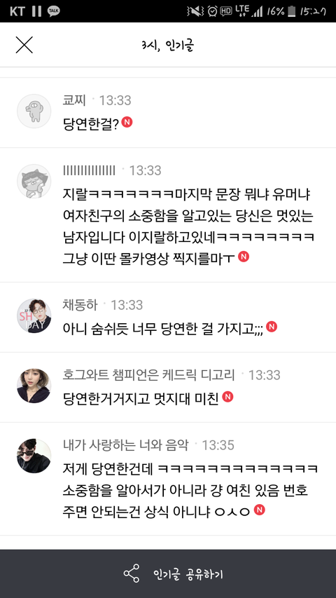 내가 다음 인기게시판 보다가