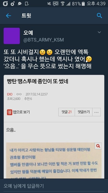 ㅋㅋ 짹에 엑톡 서치하다가 관음년 봐서 박제띠