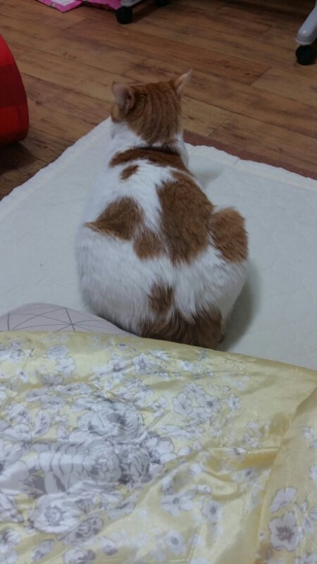 이불 끝에 푸짐한 엉덩이를 내보이고 있음.