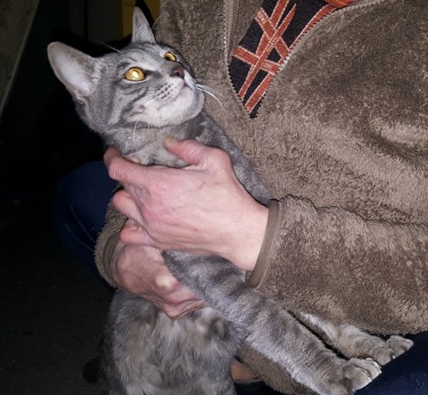 러시안블루의 믹스로 추정되고, 암코양이 입니다.