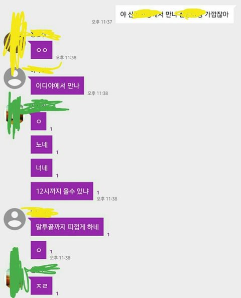 노랑이 싸우는 애들이고 초록이 나랑 같은 의견 가진 친구임 졸업해서 볼 필요없는데 막나갈까?아니면 말 예쁘게하고 녹음할까