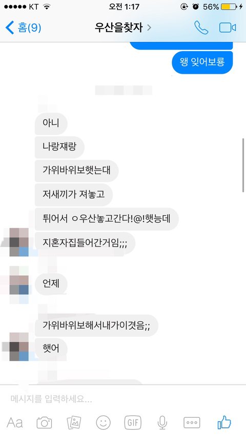 뭐하다가 잊어버렸냐니깐 친구둘이 가위바위보해서 누가 우산가져갈지 결정했나봄 근데 둘이 오해를 해서 걍 서로 가져갈줄 알구 튄거,, 여기서 기분 솔직히 나빴음 지네 우산도 아니고 누군가한테 빌린 우산을 그렇게 함부로 한다는게 나는 조금 이해가 안됐음