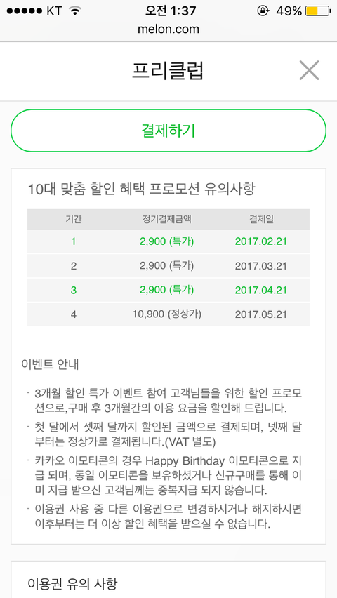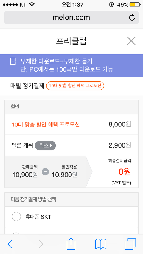 전까지는 문상으로 한달 스밍돌렸는데ㅠㅠㅠ 아까 그그 올라온 글 보고 프리클럽? 저거 하려는데 저번에 스밍권 사고 남은 캐쉬있어서 최종결제금액은 0원이고 다음달은 2900원이니까 두달동안 하면 2900원만 내면 되는건데