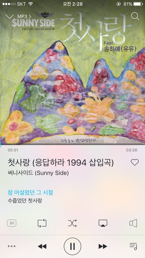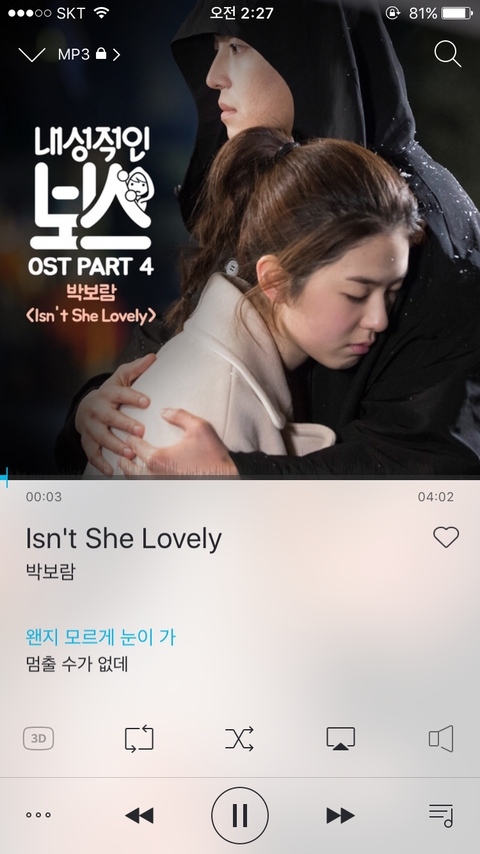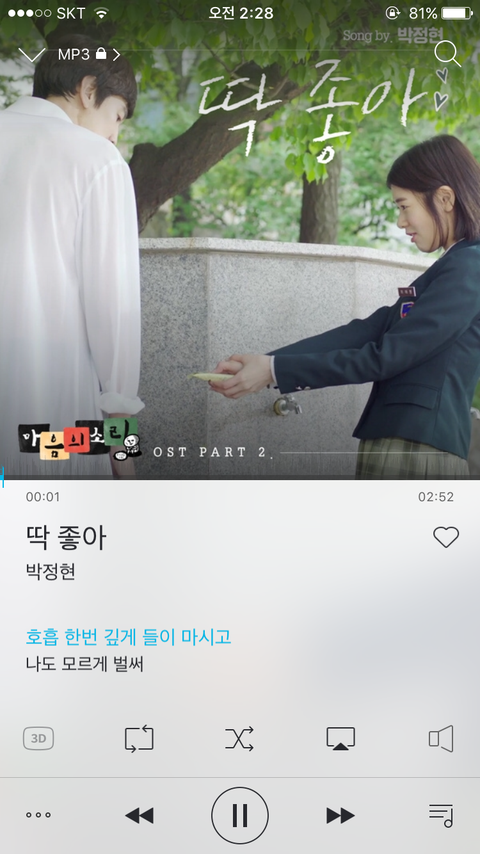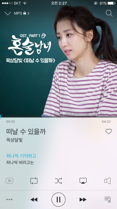 난 이드라마는 안보는데 와세상에 노래가 너무 설레고 설레서 계속 듣는중ㅠㅠㅠ 혹시지금 막 썸중이거나 막 들으면 괜히 가슴 듀근거림.....ㅎㅎㅎㅎ 그 팝송리메이크 아니구 암튼 좋아ㅜㅜ