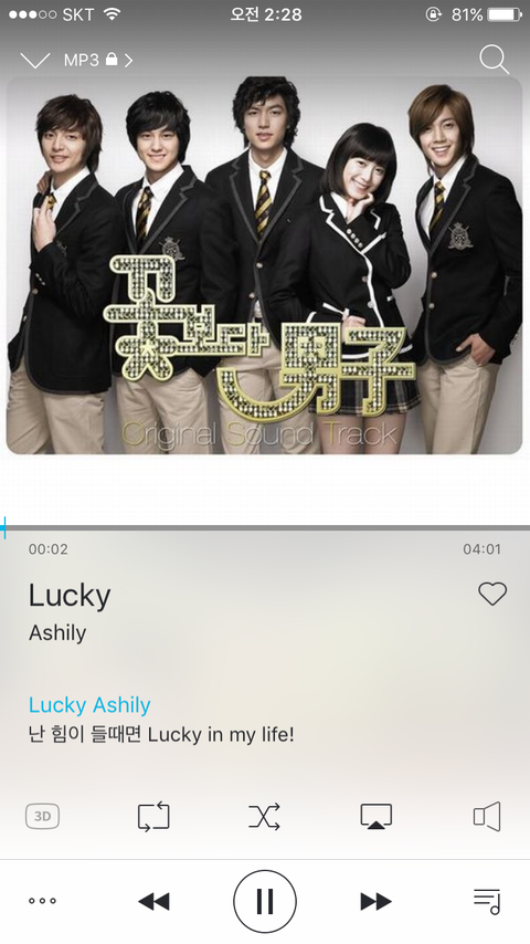 꽃보다 남자 본샤람...? 이노래는 솔직히 명곡 ㅇㅈ 약간 요즘 가수들에비해 약간 부족한 실력인데 그래서 더좋아...ㅎㅎㅎ 이것만 들으면 학교생활들이 떠오르면서 음 난 이것도 공부하면서 들으니까 좋더라 !!