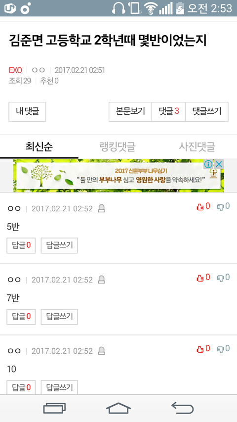 다 말이 다름ㄲㅋㄱㅋㅋㄱㄱ 그럼 난 3반에 찍어야지ㄲㅋㄱㅋ