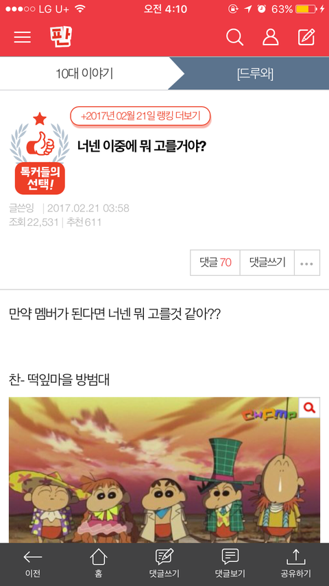 +엥 댓글 알림 갑자기 좀 많이 뜨길래 들어와서 확인했는데 톡선이네 !!! 이러케 많은 사람들이 봐줄물 몰랐어 헤헤헤 완전신기하다 =ㅁ= 헤헤
