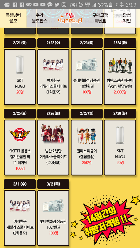 그 24일날 응모해야 방탄 피규어 받을 수 있는거겠지? ㅠㅠ 내가 모르공.. 어제 하나써버렸어 ㅠ