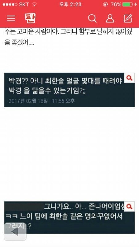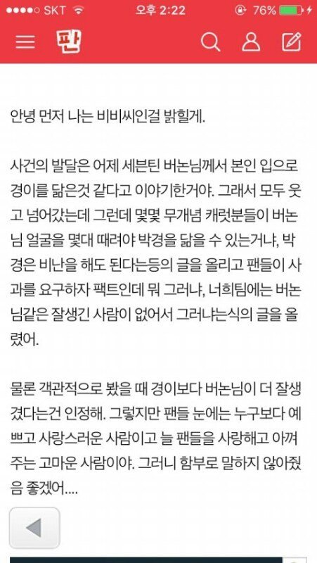 (2) 그에 대한 팬톡 캐럿 반박글 링크