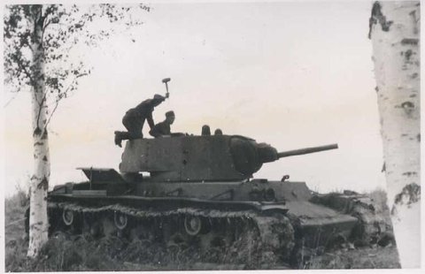 2차 세계대전 당시 연합군 장병이 망치로 해치를 두드린 후 해치를 연 독일군 장병을 공격하려는 중이다