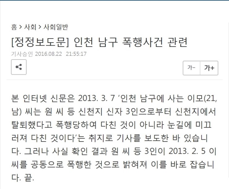 신천지 신문 천지일보가 신천지의 폭행사건 은폐 보도한 것
