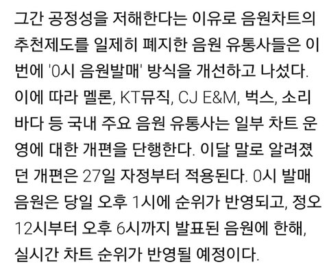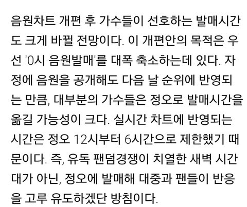 순위 반영시간을 낮 12시~6시로 바꾼다해서 정오에 내는거임 자정에 발매해도 순위반영이나 챠트반영 안됨. 그리고 확정된거임.
