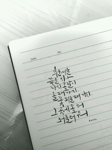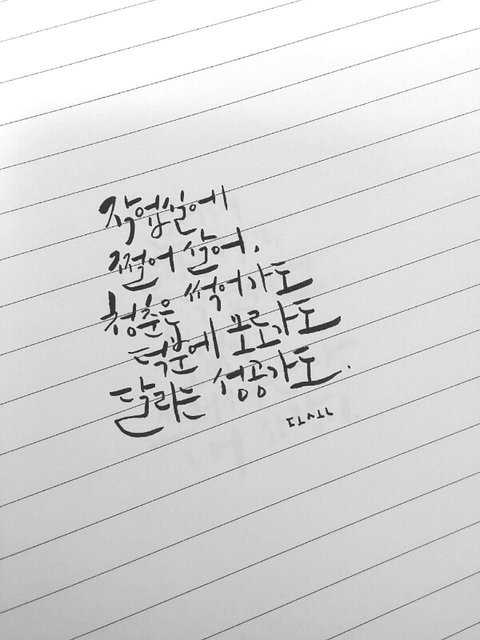 평소에 그냥그냥 취미로 캘리그라피 하고있는 03이에요!! 아직 학생이라 펜도 초저렴이 쓰고있고 취미로 하고있어서 전문적인 지식도 없고.. 그래요ㅠㅜ 고쳐야 할 부분같은거 댓글에 남겨 주세요! 아미라서 방탄가사입니다 그걸로 뭐라하지는 말아주세요..! 칭찬은 감사합니다♥