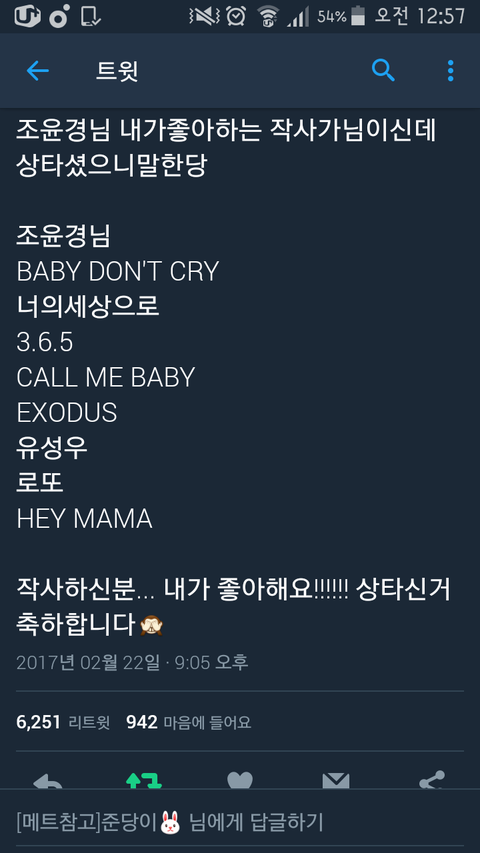 야 조1윤1경님 작사한거보소ㅋㅋㅋㅋㅋ