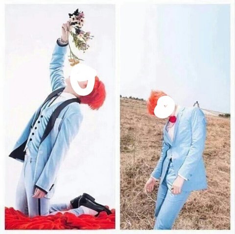 정말 난 처음에 진짜 권지용(지드래곤)이랑 동영배(태양)라고 생각했는데 얼굴 보니까 분홍머리가 랩몬스터였고 주황머리가 지민이었을 거야 진짜 얼굴 가리니까 너무 똑같더라