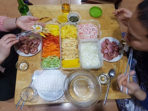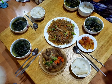 미역국 끓이고 소갈비찜이랑 잡채