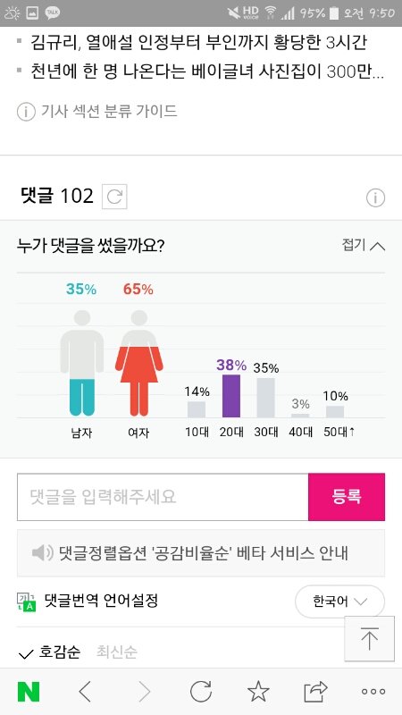위에는 댓글 백개 넘어간 직후 나온 분포