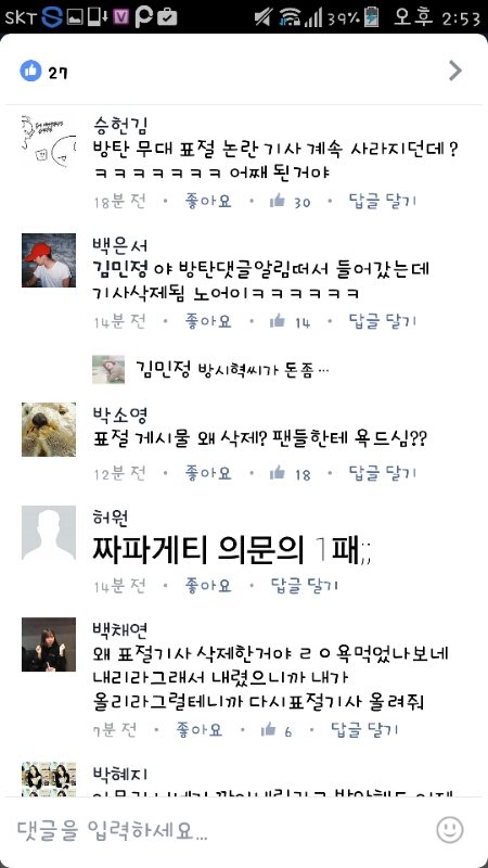 댓글은 너무 빡쳐서 캡처 못해왔는데...원하는 이삐들 있으면 캡처해서 보여줄게 함 들어가봐 디패 뜬금없이 저런 기사 올리는 것도 역겹고 댓글들에 뭐라는지 아니? 왜 표절 기사 지우냐고 돈먹었냐고 ㅋㅋㅋㅋㅋㅋㅋㅋㅋㅋ이건 진짜 방탄까기위해 존재하는 사람들 아니냐...?