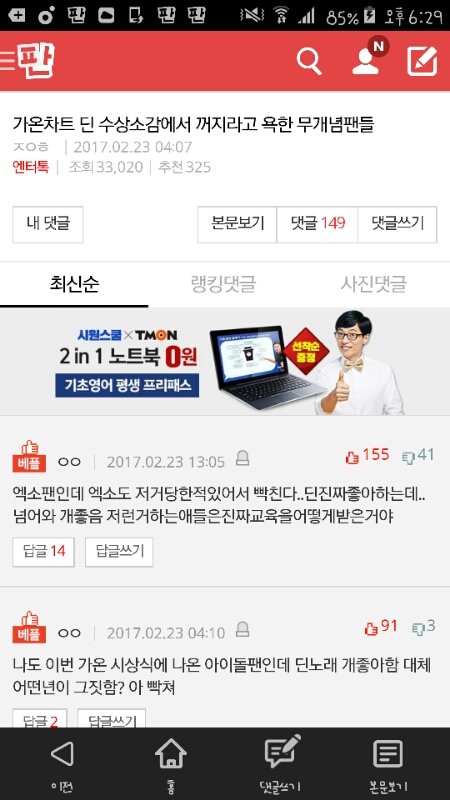 톡선1페이지에있다 찬반댓글 반대꼭하고 메로디 팬코하고있음지금